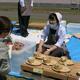 次に野焼きパンを作りました。生地をこねて発酵させ、棒にくるくる巻き付けて火であぶって焼く、普通のパンとはちょっと違うパンでした。