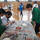 午前中最初は原始火起こし体験を行いました。木の棒やロープを使って火を起こすのは難しそうでしたが、クラスごとに協力して火だねを作っていました。